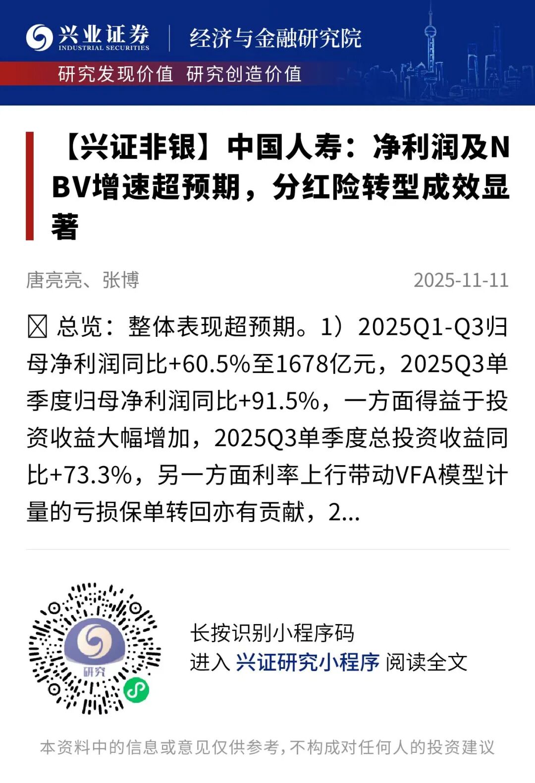 证券研究报告:《中国人寿2025年三季报点评:净利润及NBV增速超预期,分红险转型成效显著》